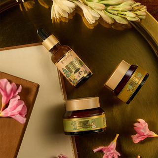 Discover our Ayurvedic ingredient glossary—a blend of time-tested ingredients supported by science, meticulously selected to offer effective skincare and a transformative, uplifting experience. We're dedicated to delivering nature's luxurious gifts that unlock the secrets of natural wonders for your skincare journey. Our recipes embody ancient wisdom, utilizing the power of Flora for a radiant, authentic experience where tradition seamlessly merges with transformation.